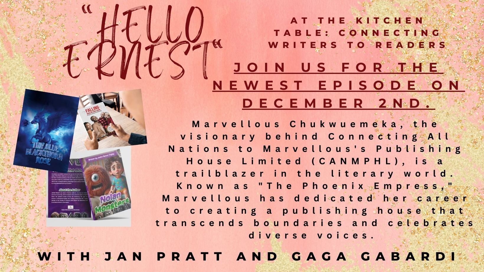 I had the pleasure of participating in a podcast interview with Janice Pratt from the USA. The interview was conducted online and organized by Janice’s team at “Hello Ernest: At the Kitchen Table – Connecting Writers and Readers.” It was an amazing experience where I had the opportunity to share my insights and experiences as a book publisher. You can listen to the interview and find more information on Janice’s site and the audio below. Stay tuned for the video, which will be available shortly.
